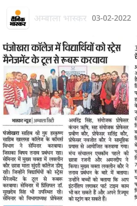 A Seminar Organized By PG Department of Commerce Topic: “STRESS MANAGEMENT ” Speaker: “Ms. NAVLEEN KAUR ” (Mata Sundri College Under Delhi University, Delhi)