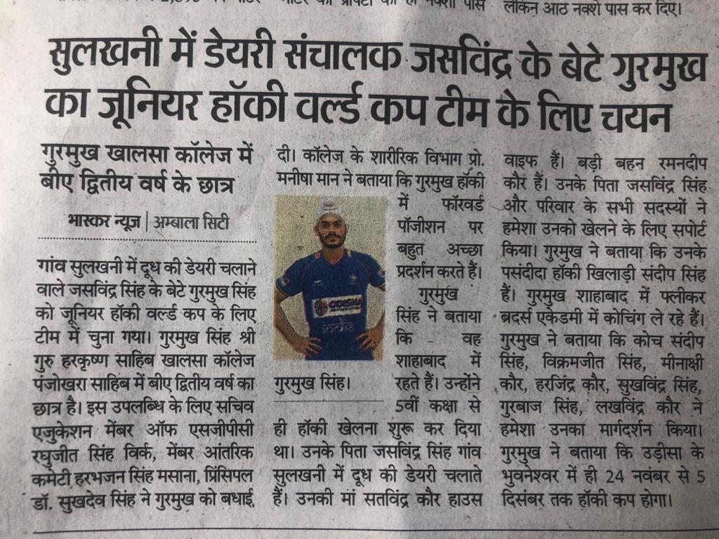 Best Wishes to Our Sports Student Gurmukh Singh for Playing Junior World Hockey Championship🏑🏑🏆🏆🇮🇳🇮🇳 November 14, 2021November 14, 2021 Harminder