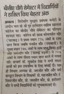 EXCELLENT RESULT OF B.C.A 4th Semester Class…