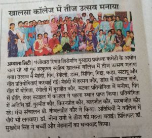 Celebrating Teez Festival in S.G.H.S.Khalsa College