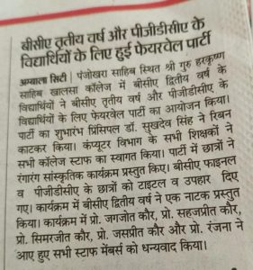 Commerce Department Organized Farewell Party For Students April 8, 2019 HarminderCommerce Department Organized Farewell Party For Students