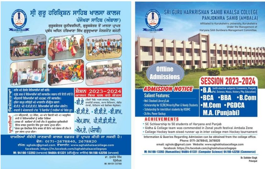 Registration(2023-2024) has been started in Sri Guru Harkrishan Sahib khalsa college panjokhra sahib, Ambala.You can avail all the benefits by getting admission in the college June 8, 2023June 8, 2023 Harminder