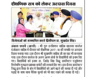 Due to End Of Session(2017-18) “ARDAS DIWAS “Ceremony Celebrated In S.G.H.S Khalsa College