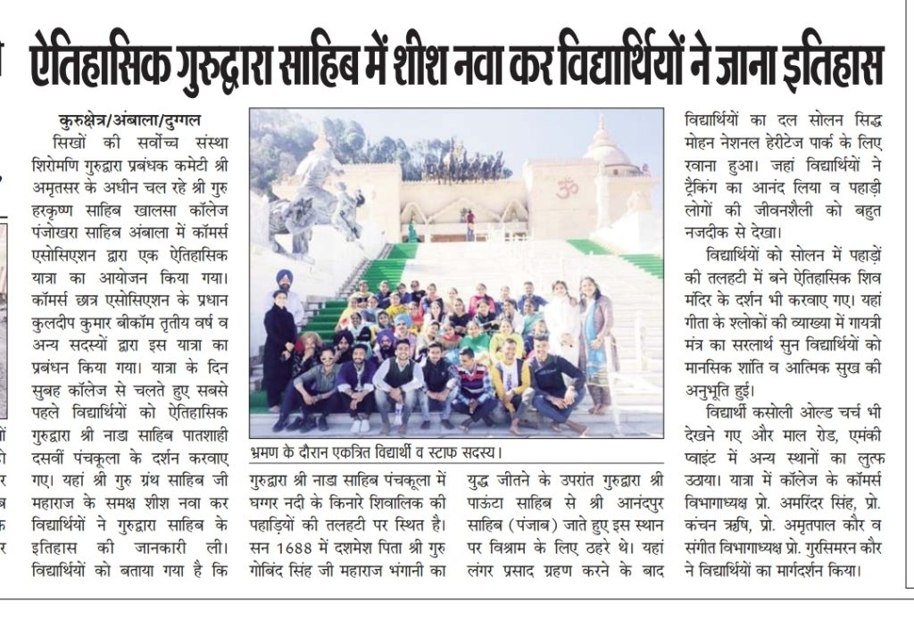 Educational trip to Gurudwara Nadha Sahib,Solan and Kasauli Organized by Commerce and Music DepartmentEducational trip to Gurudwara Nadha Sahib,Solan and Kasauli Organized by Commerce and Music Department