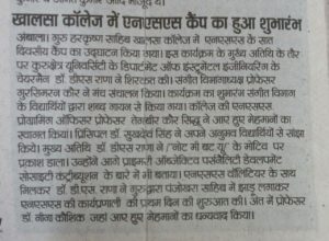 THE ” NSS CAMP” INAUGRATION AT S.G.H.S.KHALSA COLLEGE PANJOKHRA SAHIB AMBALA January 8, 2019 HarminderThe NSS Camp Inaugration at S.G.H.S.Khalsa College .The NSS Camp Inaugration at S.G.H.S.Khalsa College .